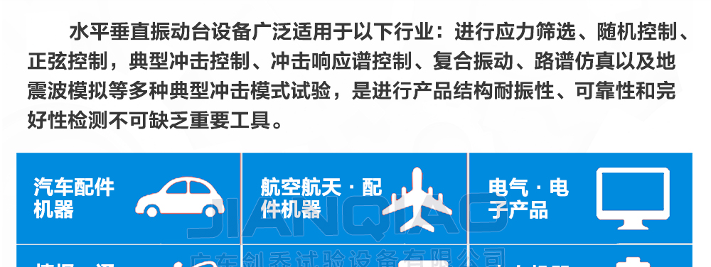 您好!歡迎光臨廣東劍喬試驗(yàn)設(shè)備有限公司!主營(yíng)產(chǎn)品:振動(dòng)臺(tái)、振動(dòng)試驗(yàn)臺(tái)、高頻振動(dòng)臺(tái)、振動(dòng)試驗(yàn)機(jī)、沖擊試驗(yàn)臺(tái)、三綜合環(huán)境試驗(yàn)箱、冷熱沖擊試驗(yàn)箱等設(shè)備!