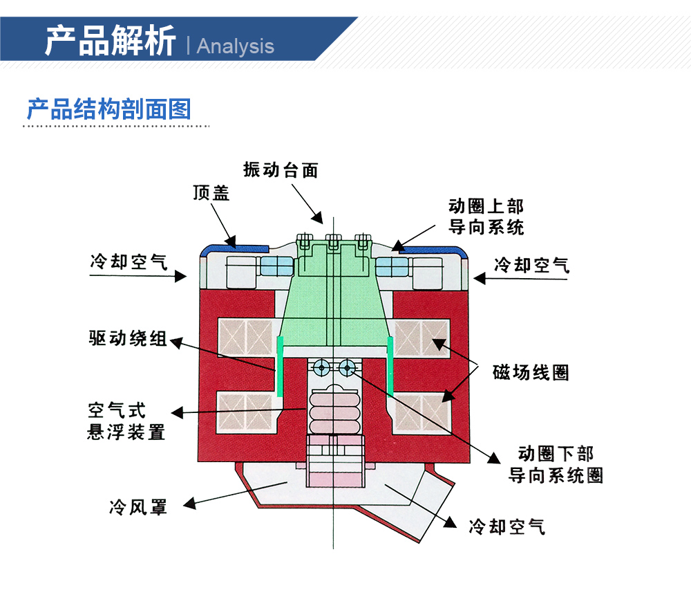 性能特點(diǎn):●強(qiáng)制風(fēng)冷 ●正弦激振力范圍: 1kN ~ 70kN●兩倍的正弦沖擊力(2噸以上可選三倍) ●輕質(zhì)動(dòng)圈,優(yōu)化設(shè)計(jì),耐振性能強(qiáng)●中心氣囊承載能力強(qiáng),低頻性能好 ●可配置水平滑臺(tái)●風(fēng)機(jī)冷卻效果好,噪音低 ●使用頻率可從1Hz開始●隨機(jī)與正弦激振力1:1 ●位移峰峰值最大可達(dá)100mm●耳軸氣囊隔震效果好 ●雙磁路設(shè)計(jì),漏磁低,磁場均勻●正弦、隨機(jī)、沖擊等試驗(yàn)功能 ●高效率、高可靠性功率放大器系統(tǒng)特點(diǎn):◎一階共振頻率高、使用頻率寬優(yōu)化的動(dòng)圈骨架結(jié)構(gòu)設(shè)計(jì),特別是對傳統(tǒng)結(jié)構(gòu)的動(dòng)圈骨架傳力角板等薄弱環(huán)節(jié)進(jìn)行增強(qiáng)設(shè)計(jì),有效提高了傳力剛度;采用膠接與螺釘連接的復(fù)合固定繞線環(huán)筒和繞線環(huán)筒增強(qiáng)膠孔的新結(jié)構(gòu),增強(qiáng)了繞組的剛度。顯著提高了動(dòng)圈的一階共振動(dòng)頻率,超過了國際同類產(chǎn)品。◎動(dòng)圈繞組可靠性高獨(dú)創(chuàng)的動(dòng)圈繞組加強(qiáng)環(huán)的新結(jié)構(gòu)和新工藝,顯著提高了動(dòng)圈繞組工作在大推力、高加速度振動(dòng)、沖擊和高溫環(huán)境中的耐振可靠性。◎風(fēng)冷效率高創(chuàng)新的電動(dòng)臺(tái)冷卻風(fēng)道設(shè)計(jì):改進(jìn)了進(jìn)風(fēng)結(jié)構(gòu),上磁環(huán)用長槽型進(jìn)風(fēng)道取代圓孔型進(jìn)風(fēng)道;勵(lì)磁線圈采用蜂窩式風(fēng)道、中磁環(huán)采用雙層風(fēng)流式風(fēng)道、下磁環(huán)采用斜楔型風(fēng)道等新結(jié)構(gòu),顯著提高了冷卻效果。◎冷卻風(fēng)機(jī)冷卻風(fēng)機(jī)具有獨(dú)特的風(fēng)道等結(jié)構(gòu)設(shè)計(jì),風(fēng)機(jī)冷卻效果好,噪音低。◎水平和垂直試驗(yàn)帶水平滑臺(tái)的電動(dòng)振動(dòng)臺(tái)可以用于水平和垂直試驗(yàn),兩個(gè)方向的切換方式簡單,翻轉(zhuǎn)方便。◎采用IGBT模塊功放采用性能可靠的MOSFET和IGBT模塊,具有很高的穩(wěn)定性和可靠性。◎安全性能產(chǎn)品符合歐洲標(biāo)準(zhǔn)測試要求,在功放上裝有緊急停止開關(guān),有效應(yīng)對突發(fā)事件。符合美國UL和CE安全要求。