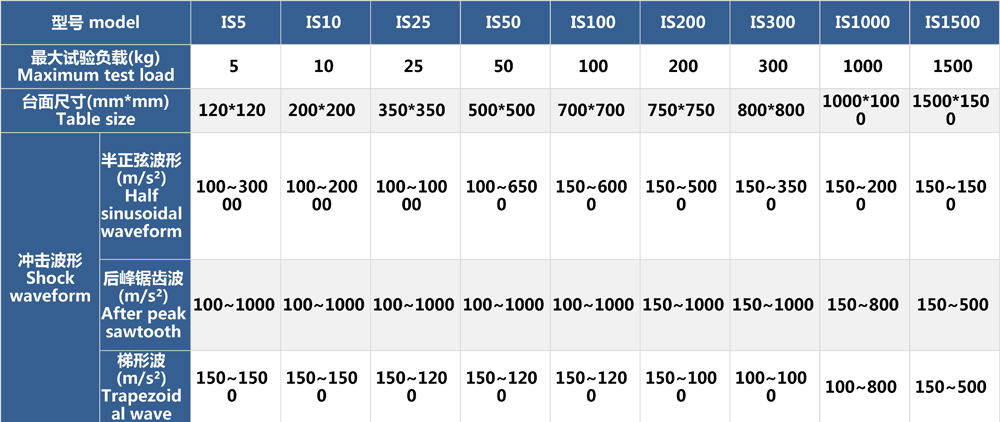 公司產(chǎn)品樣本中分別標(biāo)注出了各型號(hào)氣動(dòng)沖擊碰撞試驗(yàn)臺(tái)的空載和標(biāo)稱加載狀態(tài)下的速度變化量,用戶可根據(jù)自身試驗(yàn)指標(biāo)來(lái)選擇適合自身需求的沖擊臺(tái)。
